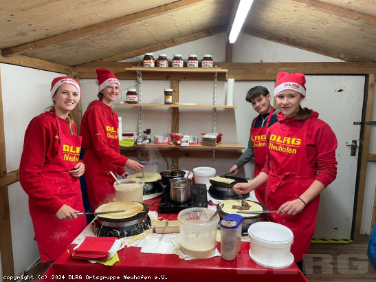 Ein fester Bestandteil des Neuhofener Weihnachtsmarktes ist immer auch der Crêpes-Stand der DLRG Jugend. Und so waren wir auch mit der Jugend in diesem Jahr an beiden Adventswochenenden vertreten und backten Crêpes in allen Variationen. Vom herzhaften Hirtencrêpes bis zum süßen Nutella-Banane-Crêpes blieben keine Wünsche offen. Und das Jugendteam hatte wie immer viel Spaß in der Hütte. Der Verdienst ermöglicht der Jugend wieder einige Aktionen mit dem DLRG Nachwuchs – vielen Dank an alle, die uns unterstützt haben! ... Mehr erfahren